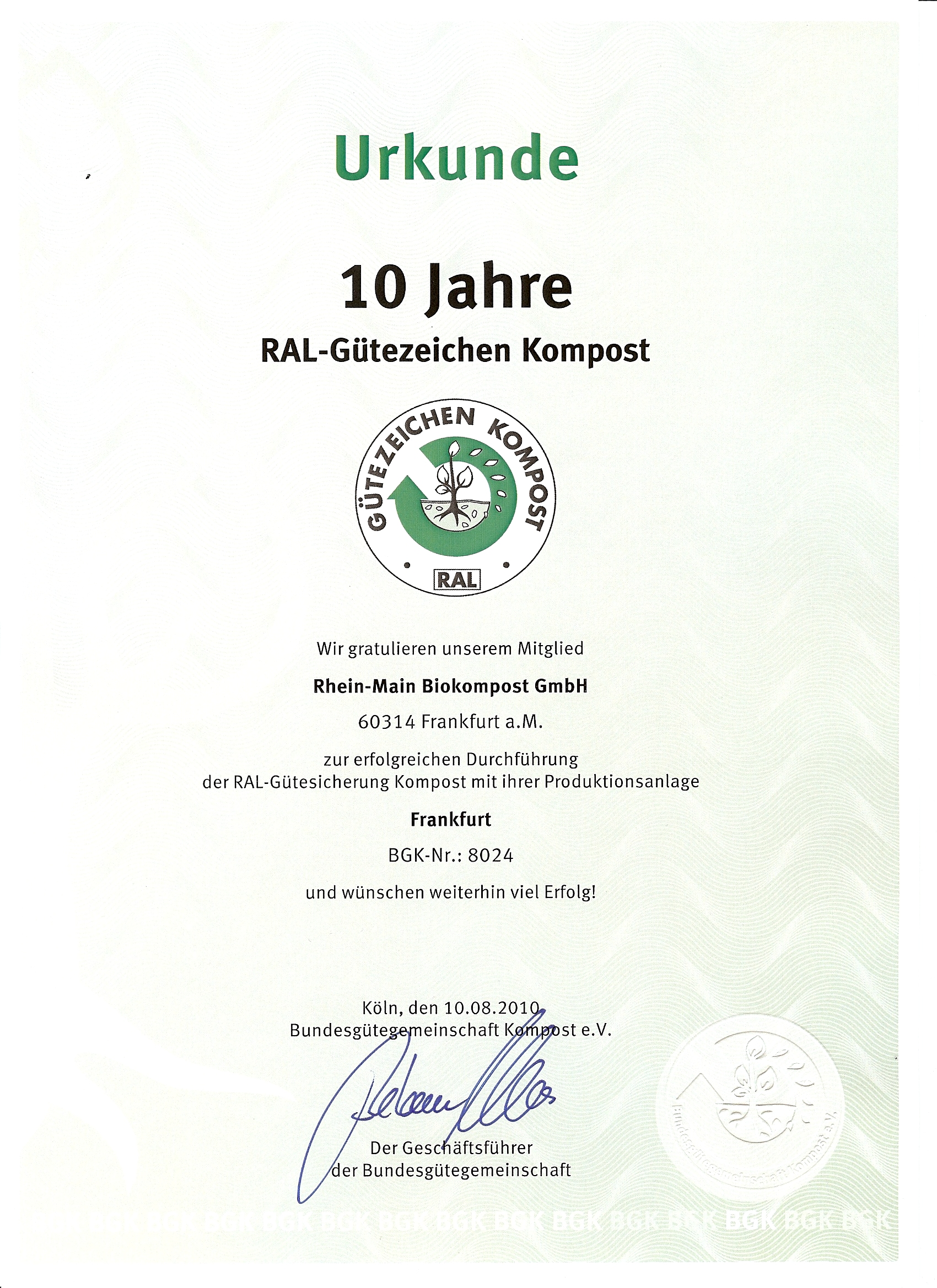 RAL-Jahreszeugnis: HUMERRA Feinkompost