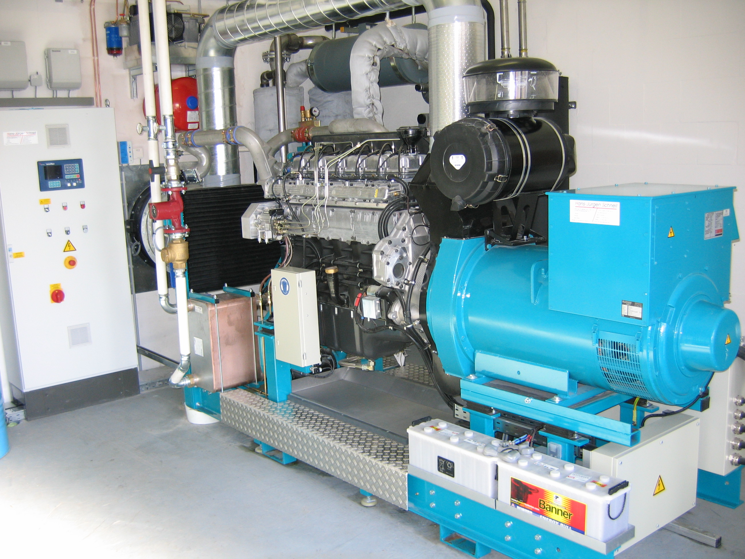 In the modular cogeneration plant, electricity and heat are produced by simultaneous generation.